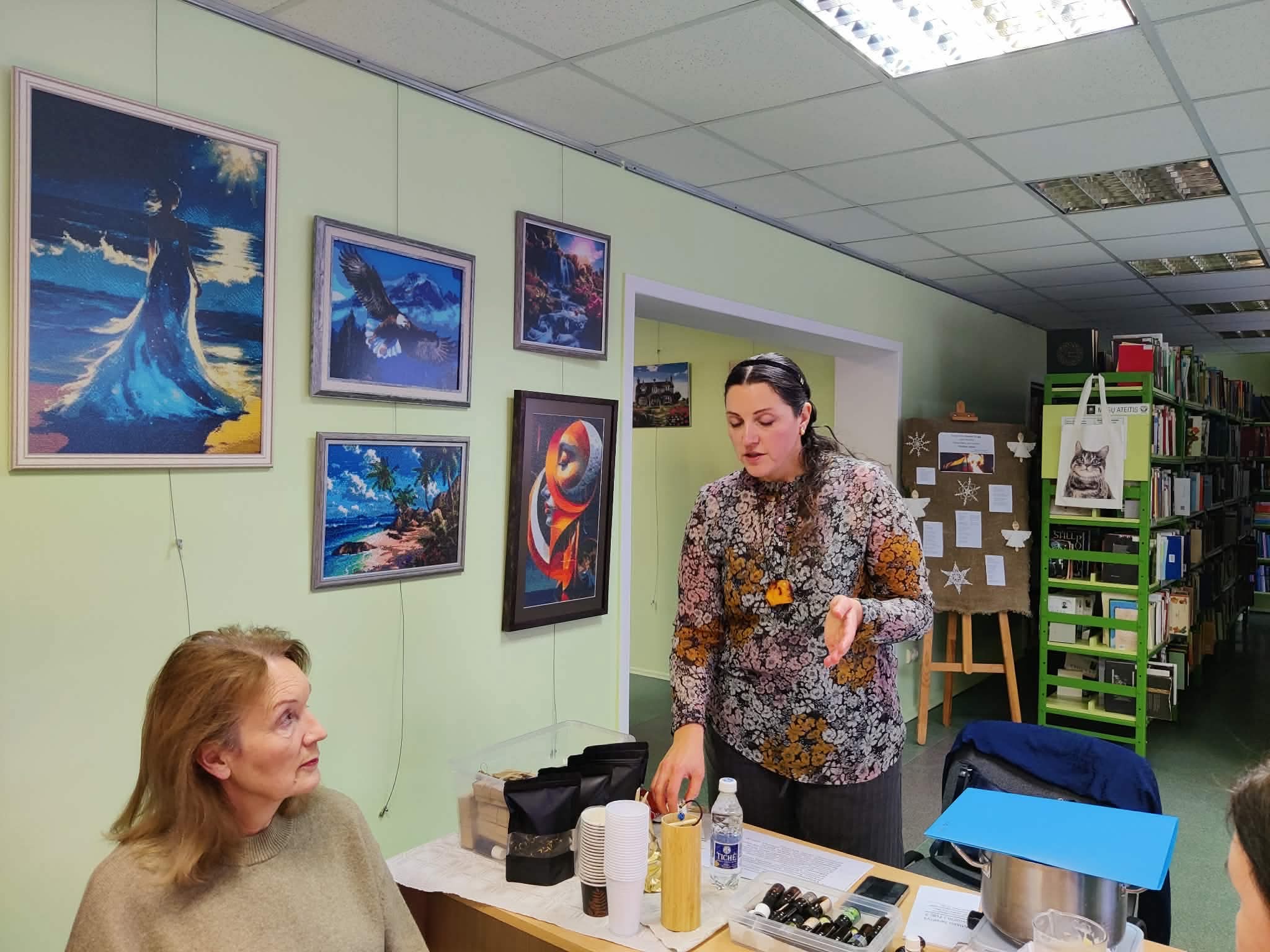 Vakar Skaitytojų aptarnavimo skyrius pakvietė lankytojus į edukaciją „Kietųjų kvepalų gamyba“, kurią vedė Kristina Šilinskienė-Naktižiedė – žinoma Lietuvos žolininkė, lektorė ir natūralios kosmetikos kūrėja.