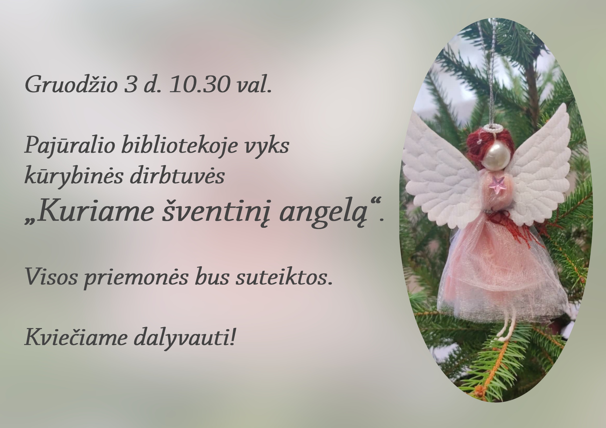 Gruodžio 3 d. 10.30 val. Pajūralio bibliotekoje vyks kūrybinės dirbtuvės „Kuriame šventinį angelą“.