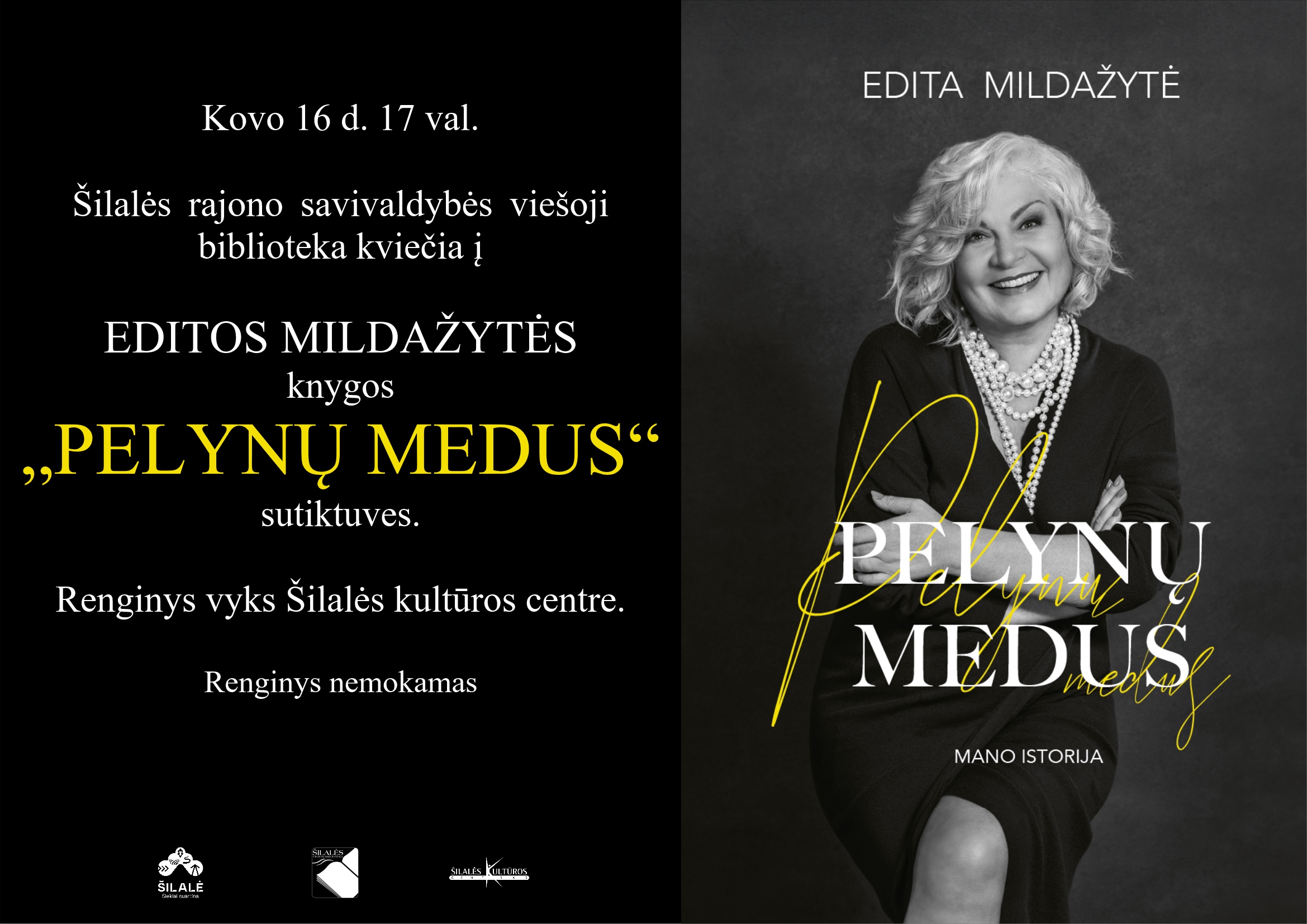 Kovo 16 d. 17 val. Šilalės rajono savivaldybės viešoji biblioteka kviečia į Editos Mildažytės knygos „Pelynų medus“ sutiktuves.