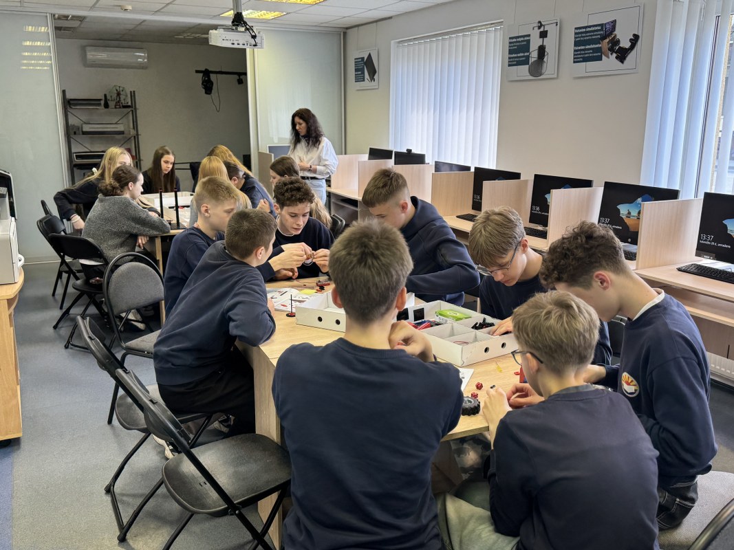 Užsiėmimo metu mokiniai, susiskirstę į komandas, konstravo įvairius modelius iš LEGO detalių. Kūrybinio darbo rezultatai – žirklinis keltuvas, keltuvas su gerve, periskopas bei ventiliatorius su jutikliu. Praktinė veikla leido ne tik geriau suprasti inžinerinius principus, bet ir ugdyti komandinio darbo bei kūrybiškumo įgūdžius.