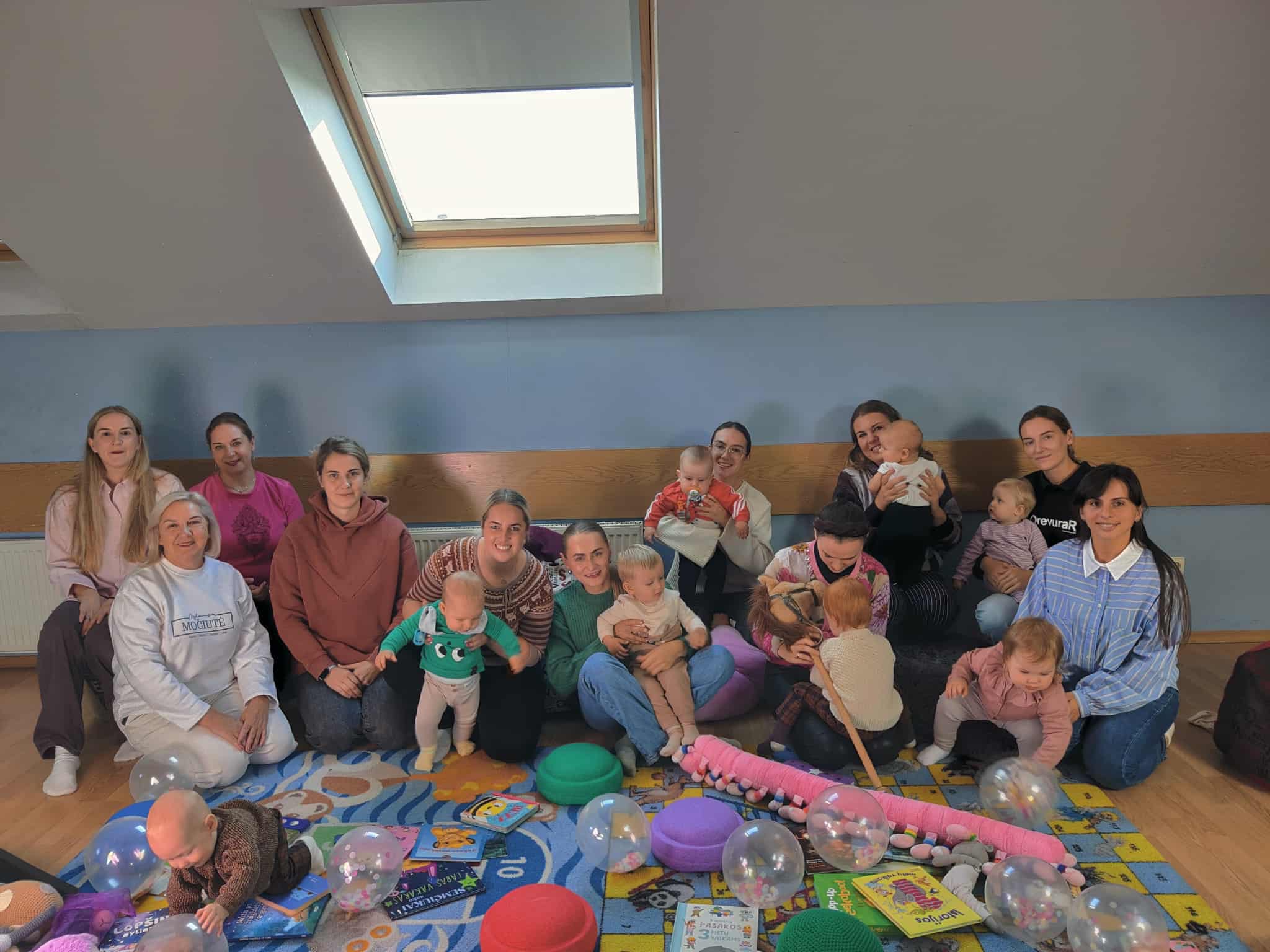Mažylius ir jų mamas pasitiko mama savanorė Šarūnė Urbikaitė, kuri skaitė interaktyvią ir žaismingą knygelę „Kaip kas miega?“. Klausydamiesi skaitomos istorijos, mažieji ne tik sekė veikėjų gyvenimą, bet ir aktyviai dalyvavo – stebėjo daiktus, tyrinėjo aplinką knygoje, mėgdžiojo veiksmus. Vėliau, pritariant mamoms, visi kartu atliko linksmą pirštukų šokį, suteikusį dar daugiau džiaugsmo ir juoko.