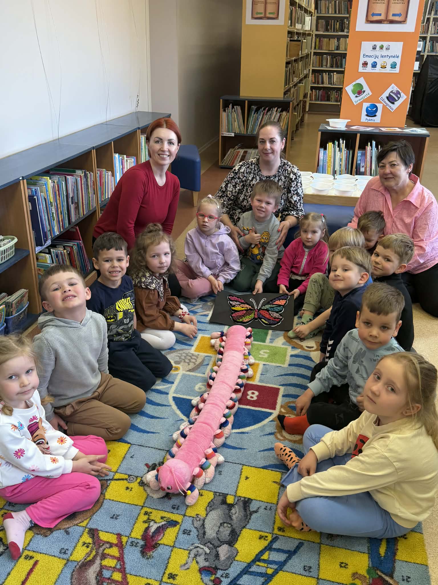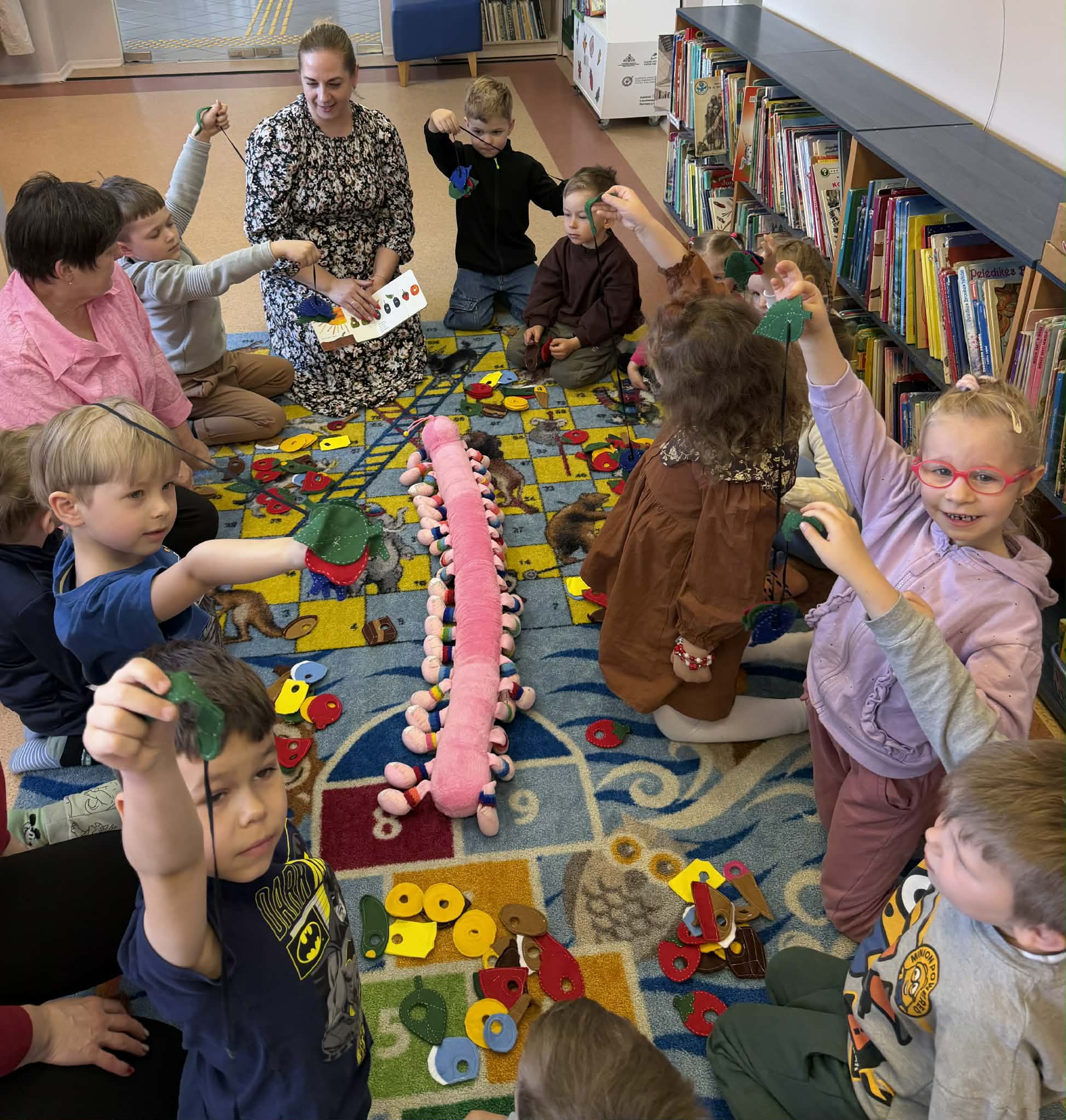 Šią saulėtą dieną Vaikų skaitykloje lankėsi Šilalės lopšelio-darželio „Žiogelis“ „Žirniukų“ grupės ugdytiniai kartu su ikimokyklinio ugdymo mokytoja Inga Mylimiene. Mažieji leidosi į spalvingą sensorinį edukacinį nuotykį „Labai alkano vikšrelio istorija“, paremtą visame pasaulyje mylima E. Carlo knyga „Labai alkanas vikšrelis“.
